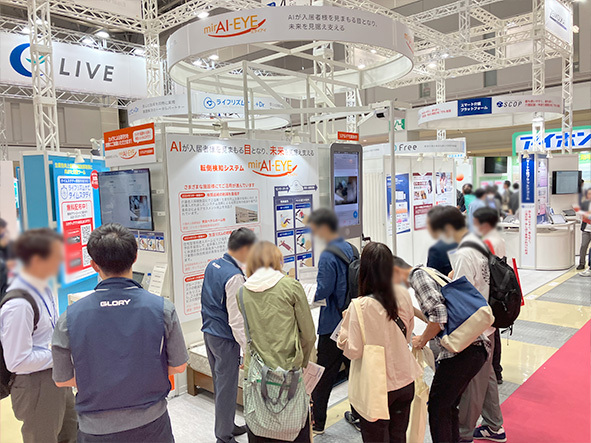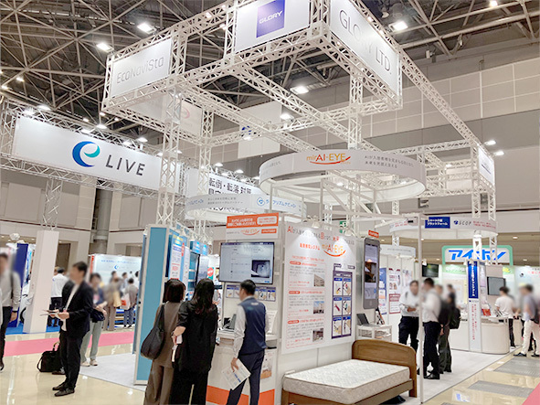 今回のブースでは、グローリーの骨格認識技術を搭載した転倒検知システム「ミライアイ」や、SaaS型高齢者施設見守りシステム「ライフリズムナビ®+Dr.」を展示しました。