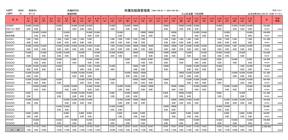 シフト表を作成します。自動割当機能で指定された店舗毎に従業員の希望勤務日時を考慮したシフト予定表作成が行えます。