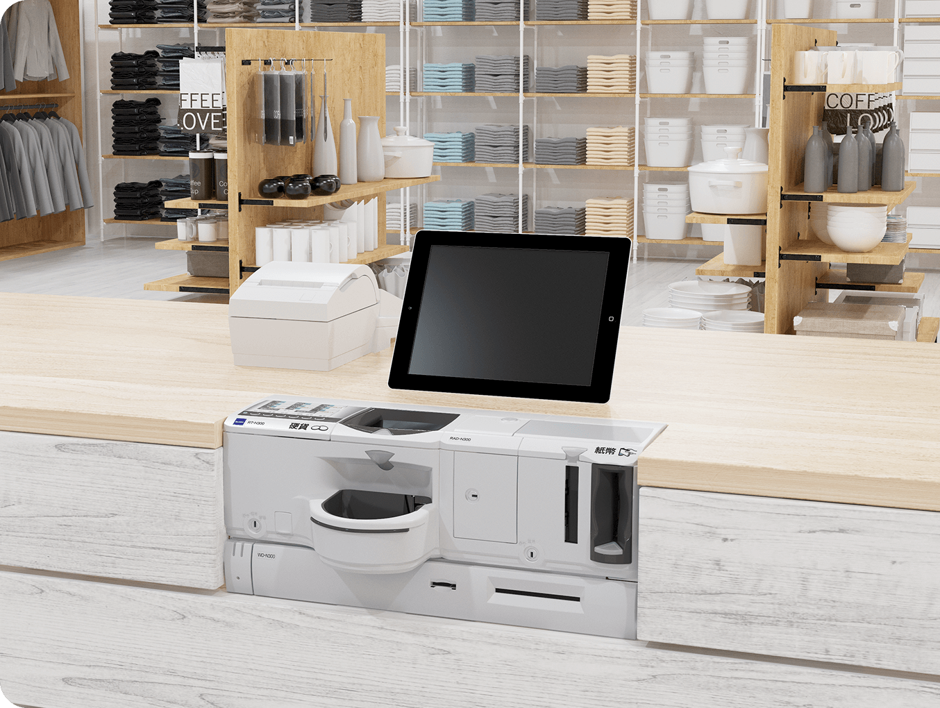 預かり金の計数とおつりの払い出しが機械により自動化されるため、スピーディーなレジ取引が可能となります。